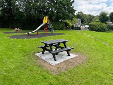 A recycled plastic picnic-bench has been installed on Durham Road playpark, thanks to a ‘Green Grant’ from Lancashire Environmental Fund. (www.lancsenvfund.org.uk).